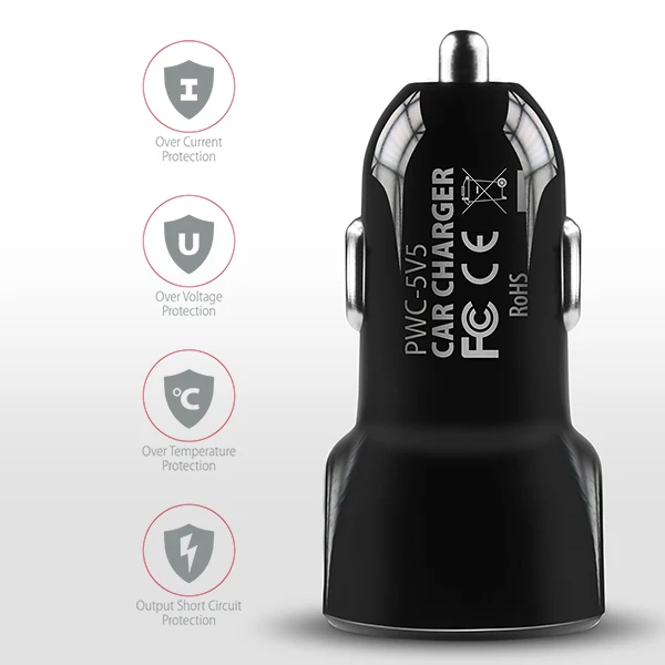 • Standard charging of all devices that support 5 V and Apple iPhone 5, 6, SE, 7 charging.