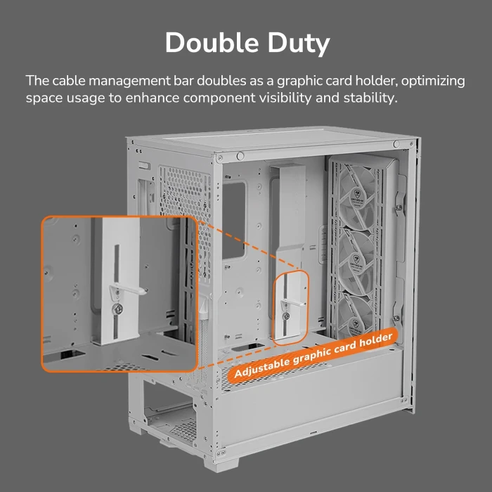 • Offers two distinct front panels to optimize air intake or showcase your build