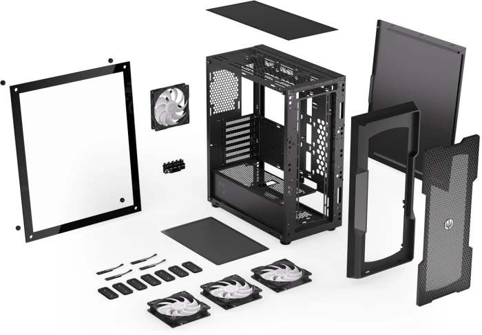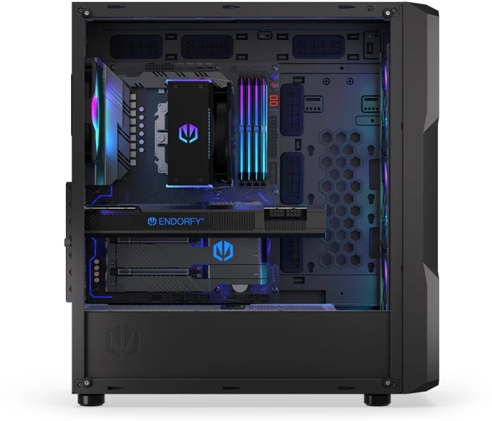Mid-Tower, ATX/mATX/mITX, 2x USB-A (3.1 GEN 1), 1x Audio/1x Mic, 4x STRATUS 120 PWM ARGB fans, ARGB Controller, Tempered Glass, Mesh Front Panel, 472×220×442mm