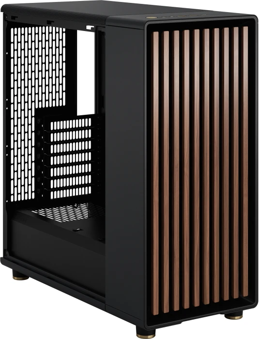 North reimagines the gaming PC, introducing natural materials and bespoke details to make gaming a stylish addition to the living space. Fusing design and airflow engineering, the case features fine-patterned mesh ventilation and an open front with real walnut or oak panels. The design is complemented by sleek brass or steel details and an integrated tab for easy access to the top of the case. Inside, North offers an intuitive interior layout and generous compatibility.