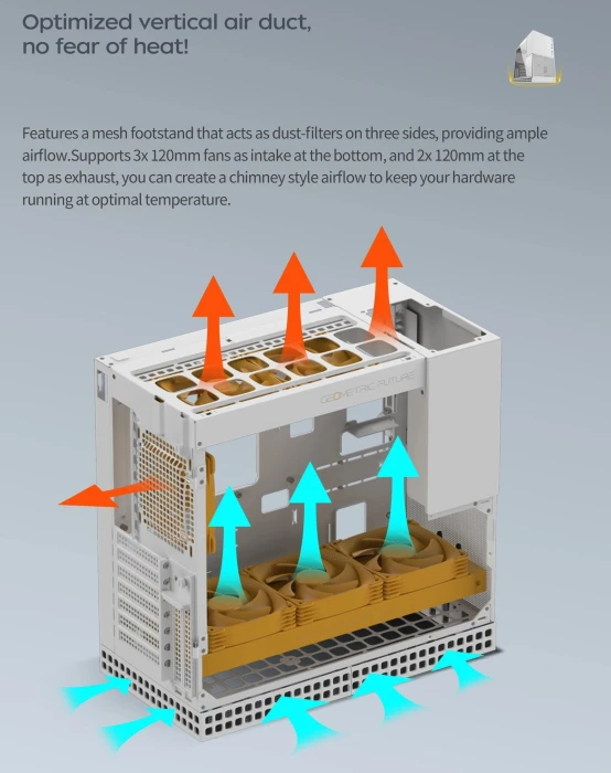 Rear: 1 x 120 mm Top: 2 x 120/140 mm Bottom: 3 x 120/2 x 140 mm |