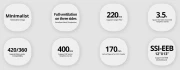 Rear: Up to 420/360 mm Bottom: up to 360/280 mm |