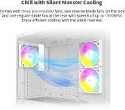 Rear: 1 x 120/140 mm Top: 3 x 120/2 x 140 mm Bottom: 3 x 120 mm Side: 2 x 120 mm |