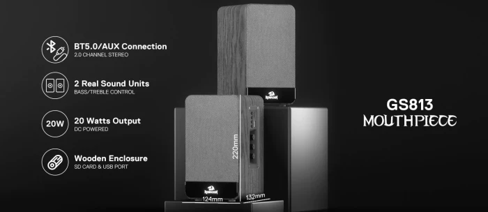 Оборудван с усъвършенствани звукови модули (драйвер за бас/високи честоти x 2) с пълнообхватно 2.0 канално подобрено стерео ядро, GS813 ви предлага превъзходно студийно качество на звука.