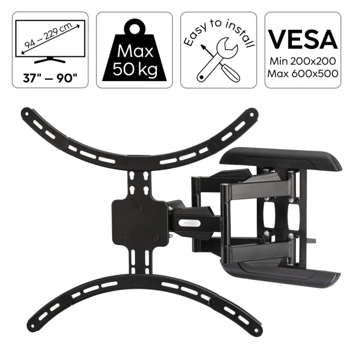 Стойка за TV Hama FULLMOTION, 600x500, 229 см (90") до 50 кг, напълно мобилна