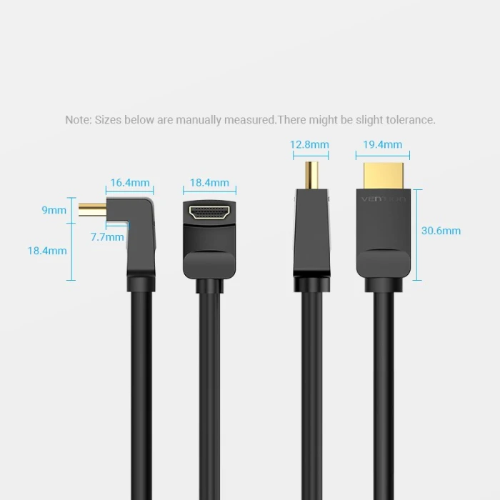 Vention Кабел HDMI Right Angle 90 Degree v2.0 M / M 4K/60Hz Gold - 2M Black - AARBH