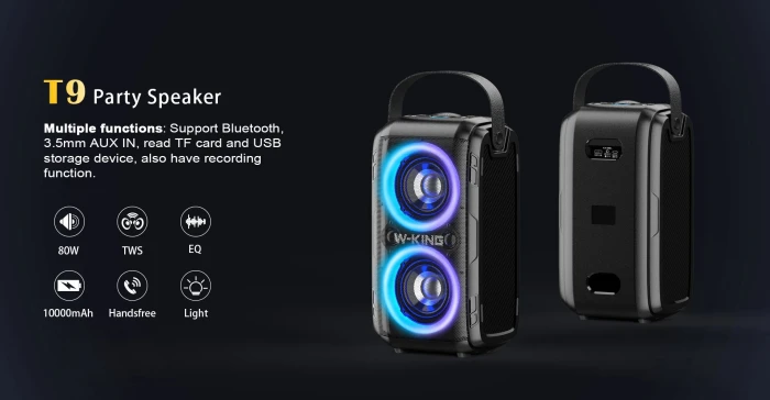 2 EQ Modes 105 db HUGE Sound Handsfree calling Light Effects Recording Function True Wireless Stereo - Pair 2 speakers together for 160W super powerful stereo Use as powerbank |