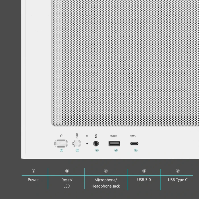 Rear: 1 x 120/140 mm Top: 3 x 120/2 x 140 mm Front: 2 x 120/140 mm Bottom: 3 x 120/2 x 140 mm |