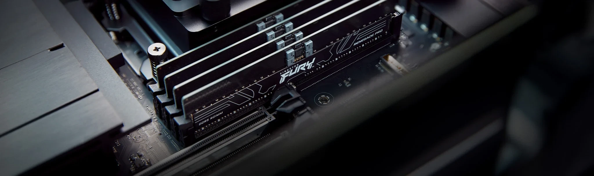 Памет Kingston FURY™ Renegade Pro DDR5 RDIMM съчетава геймърско ниво на производителност с надеждността на сървърна памет. Работни станции от ново поколение и високопроизводителни десктоп платформи изискват DDR5 регистрирани DIMM модули, а Kingston FURY Renegade Pro е създадена, за да осигури на създатели на съдържание, инженери и специалисти по данни свръхбърза памет, типично асоциирана с гейминга.