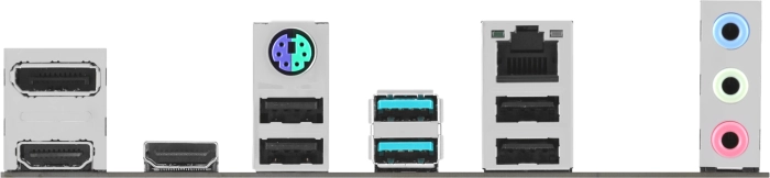 1 x DisplayPort 1 x PS/2 Mouse/Keyboard combo port 1 x RJ-45 LAN 2 x USB 3.2 Gen 2 3 x Audio jacks 4 x USB 2.0 2 x HDMI |