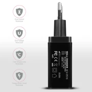 With 16W of total power, the charger recharges both mobile phones and tablets at the highest possible speed.