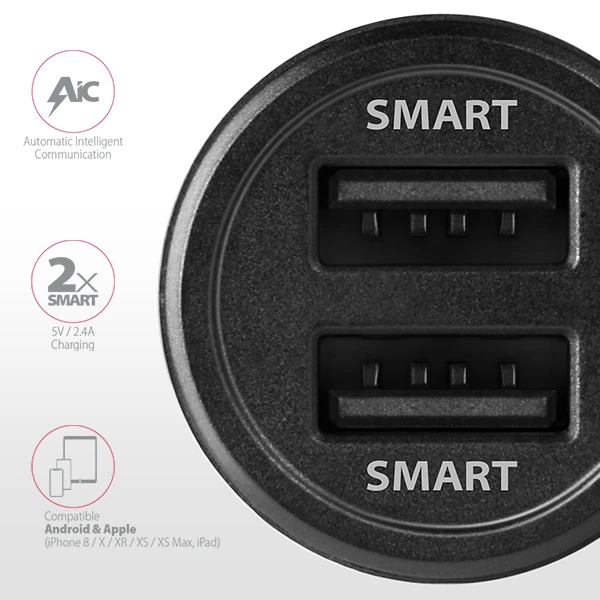 • 2x USB type A port: SMART: Smart Charging - 5V/2.4A and standard 5V charging