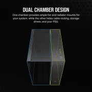 This CORSAIR 6500X Mid-Tower Dual Chamber PC Case comes pre-fitted with Elite case panels to start your build in style, complete with fully mesh paneling for exceptional airflow and a dual chamber design for an organized, stunning build.