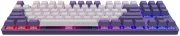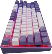 This ergonomic TKL keyboard boasts a Violet/White colour scheme. It features mechanical G3MS Sapphire switches, Double-Shot ABS keycaps with characters, 100% customizable RGB lighting, greased stabilizers, and powerful software for personalized adjustments.