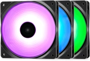 Triple PWM fan kit features 18 RGB LEDs with 6 ultra-bright LEDs on each fan offering spectacular light and great cooling DP-FRGB-RF120-3C