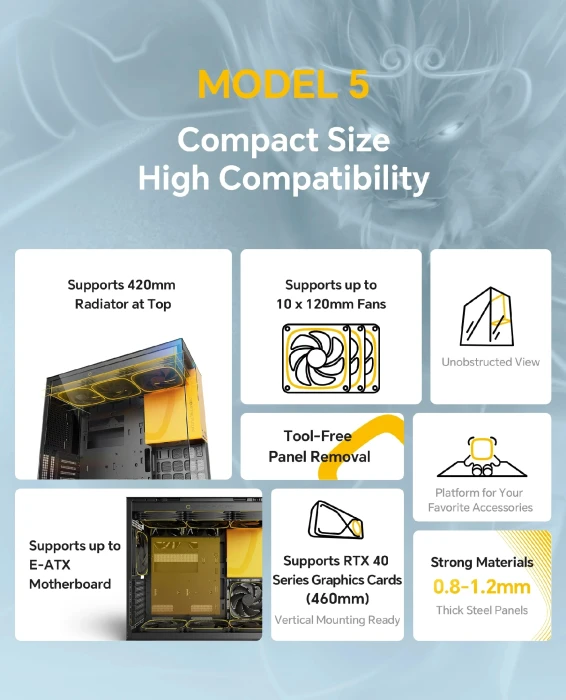 Top: 3 x 120/140 mm Bottom: 3 x 120/140 mm Side: 1 x 120/140/160 mm |