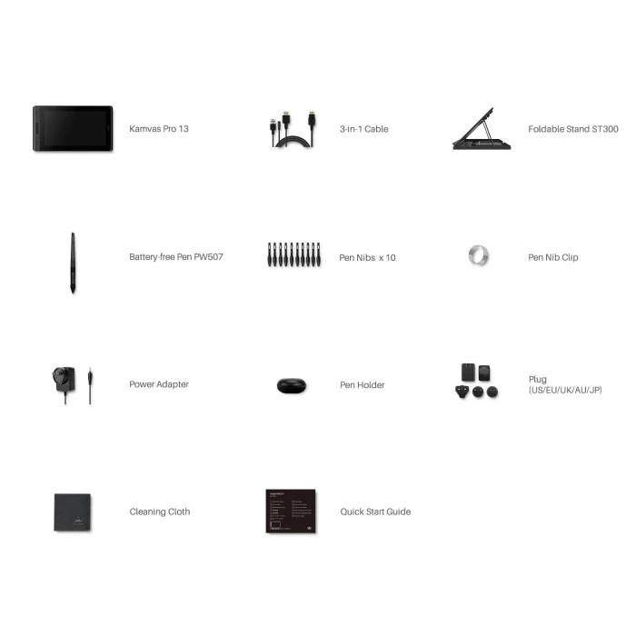 Графичен дисплей таблет HUION Kamvas Pro 13, USB-C, Черен/Сребрист