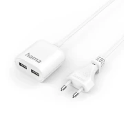 Hama USB захранване/разклонител с 1,9 м дълъг кабел, 2,4 A, 2x USB-A, бяло
