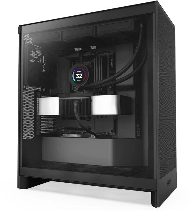 The H7 Flow revolutionizes GPU cooling in a classic mid-tower form factor. Its vertical PSU layout allows space for 3 x 120mm bottom fans, offering efficient cooling without expanding the case footprint.