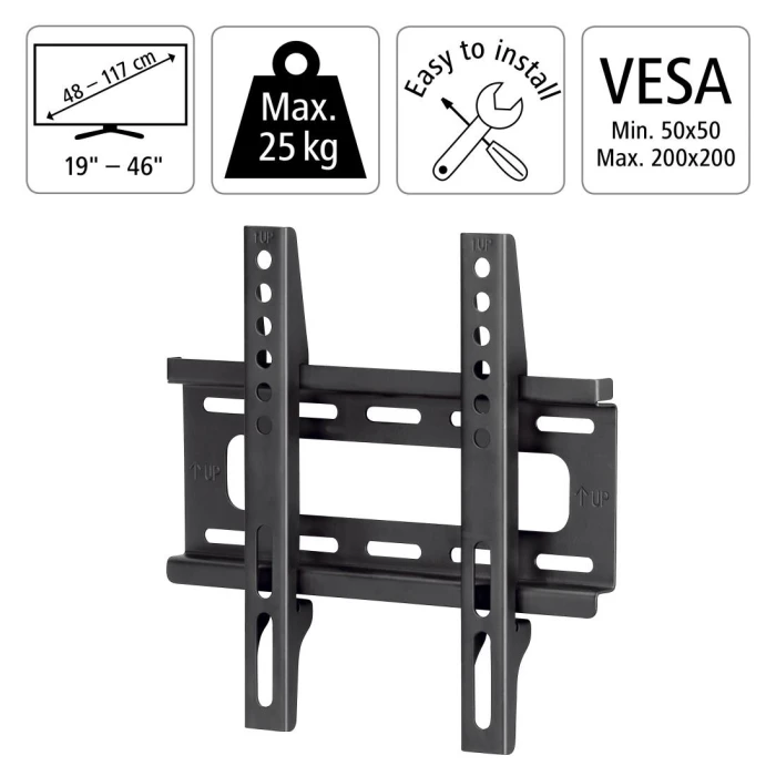 Стенна стойка за TV HAMA, Фиксирана, 19"-46", 25 кг, 3 звезди, Черна