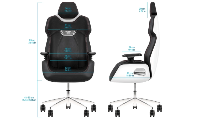 Designed to reflect a race car, the integrated side handles are designed for tilting and elevating, find the perfect posture! Left side handle to adjust seat back up to 126°. Right side handle to adjust seat height in between 16.1 - 20.8” (41 - 53cm).