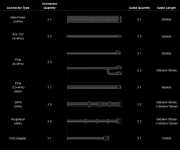 ATX 24-pin x 1 CPU 4+4-pin x 2 PCI-e 6+2-pin x 5 SATA x 8 MOLEX x 8 PCI-e 5.0 12VHPWR 16(12+4) pin x 1 |
