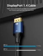 32 Gb/s Support 3D, FreeSync and G-Sync; HBR3,HDCP2.2/CEC/EDID,24K Gold plated Connector Кабел Cotton Braid Blue Aluminium Shell 8K@60Hz, 4K@144Hz, 2K@165Hz, 1080p@240Hz |