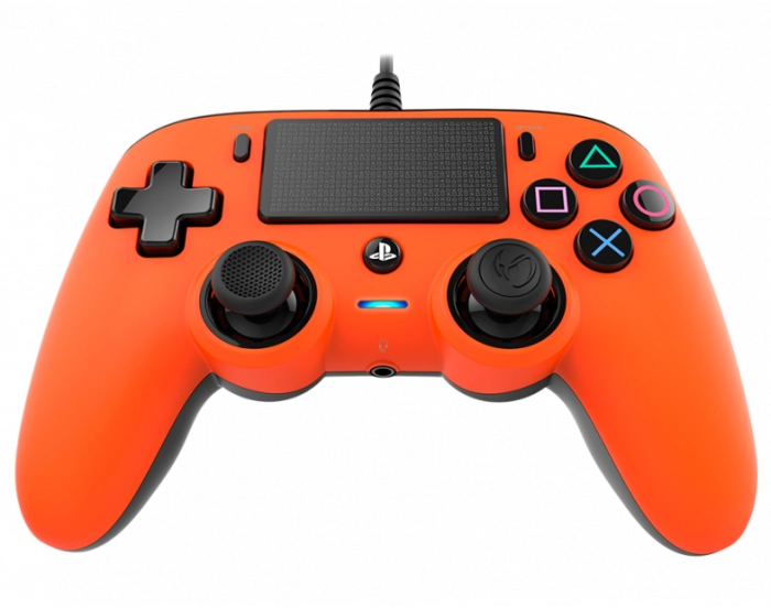 NACON's Wired Compact Controller is officially licensed for PS4™ consoles and boasts a range of essential features, including a touch pad, vibration motors and an LED player status indicator. It also includes action buttons with PlayStation® symbols and colours, as well as SHARE, OPTIONS and PS buttons.